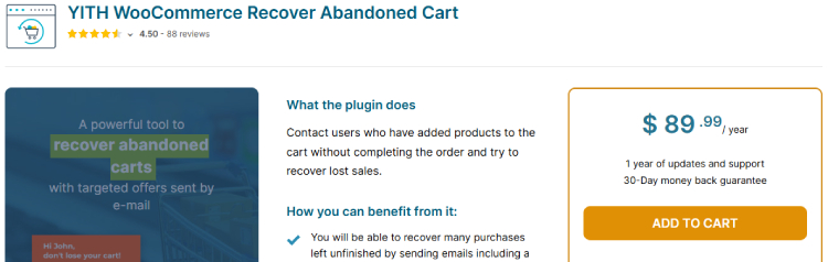 YITH is one of the most trusted plugin brands in the WooCommerce ecosystem, and their abandoned cart plugin lives up to that reputation. What sets it apart is its strong focus on guest user recovery — it claims to help stores recover up to 60% of abandoned orders when configured properly.