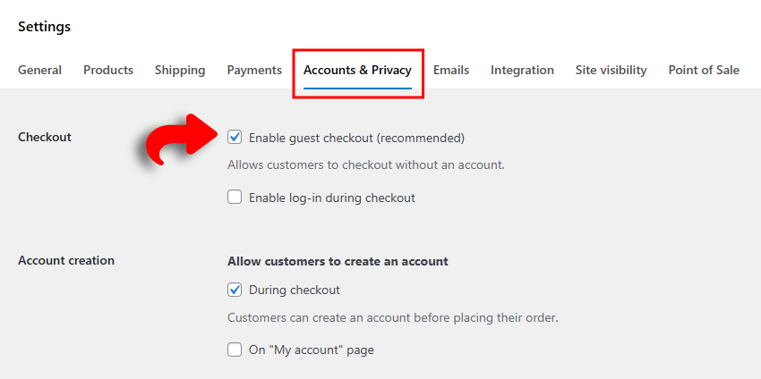 Let’s start by turning on WooCommerce’s built-in guest checkout setting.